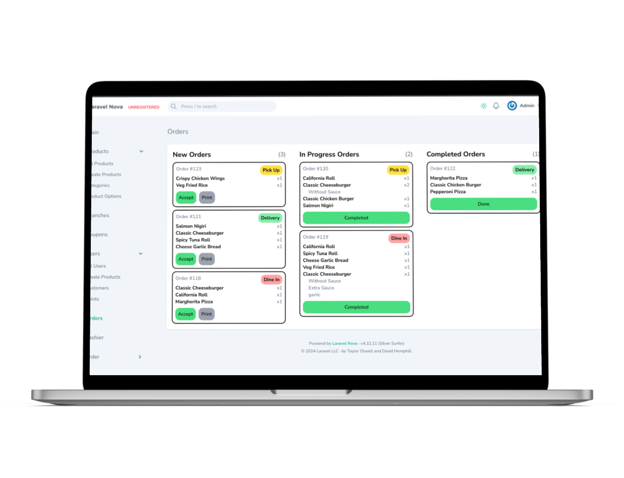 The dashboard boasted the capability to handle Point of Sale (POS) functionalities, allowing for the creation of orders directly from the dashboard and assigning them to specific customers.