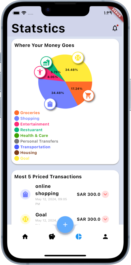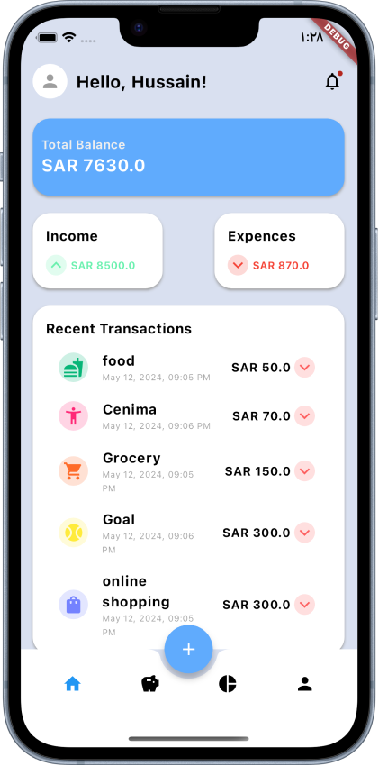 Integrated Fl-Charts for visually appealing and informative data visualization, enhancing user understanding of spending patterns and financial insights.