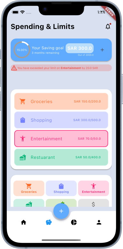 Enabled users to set personalized spending limits for different categories, empowering them to tailor their budgeting strategies according to their financial goals and priorities.